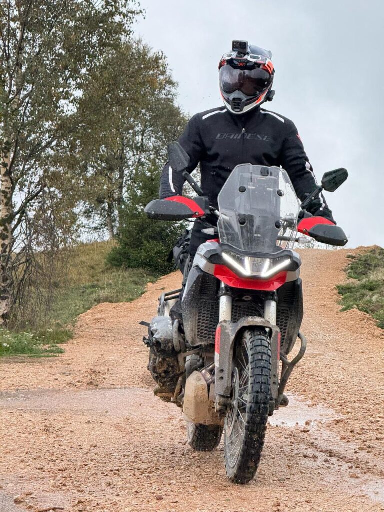 On asphalt, the bike performs very well. The riding position is comfortable, the engine can deliver a solid burst of acceleration when needed, and the bike remains very stable, smoothing out most imperfections in the road surface. In corners, it feels predictable and easy to control — but only if the suspension is properly adjusted. Otherwise, the front wheel can develop a slightly unsettling tendency to wander when pushed hard. That said, this mostly happens during fairly aggressive riding.